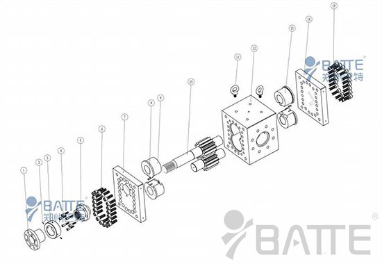 熔體泵結構主要由泵體、主動齒輪和從動齒輪、滑動軸承、前后端板、填料密封等部件組成,被廣泛應用于塑料、樹脂、橡膠、化纖制品的擠出成型。